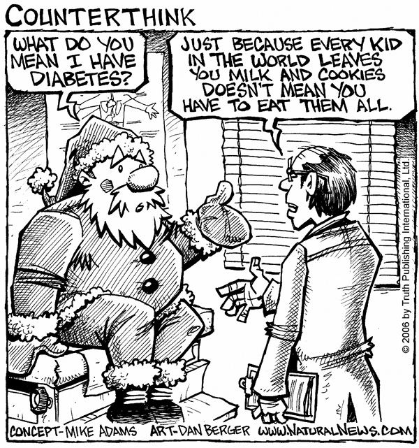 I doubt the childhood spirit of Christmas has diabetes but it is a good representation of what could happen. Its up to you to not eat 'all the cookies' like Santa did in this comic. It was up to him to keep himself from getting diabetes and he wasn't able to do it. Are you like Santa? You can control if you get Type Two diabetes, or you can try to control it.